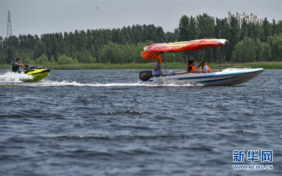 6月5日,游客在文安县赵王新河湿地公园游览。近年来,河北省文安县将植树造林与城市建设有机融合,探索“政府引导、企业运作、多方共赢”的市场化植树造林新模式,大规模推进国土绿化,打造人与自然和谐共生的优美生态环境,构筑京津雄绿色屏障。截至目前,该县森林覆盖率已经达到33%,城区绿地面积达到36.48%。新华社记者李晓果 摄
