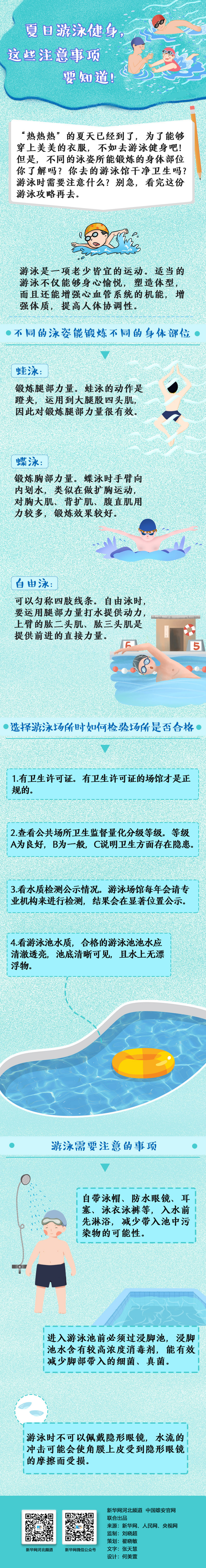 “热热热”的夏天已经到了,为了能够穿上美美的衣服,不如去游泳健身吧!但是,不同的泳姿所能锻炼的身体部位你了解吗?你去的游泳馆干净卫生吗?别急,看完这份游泳攻略再去。