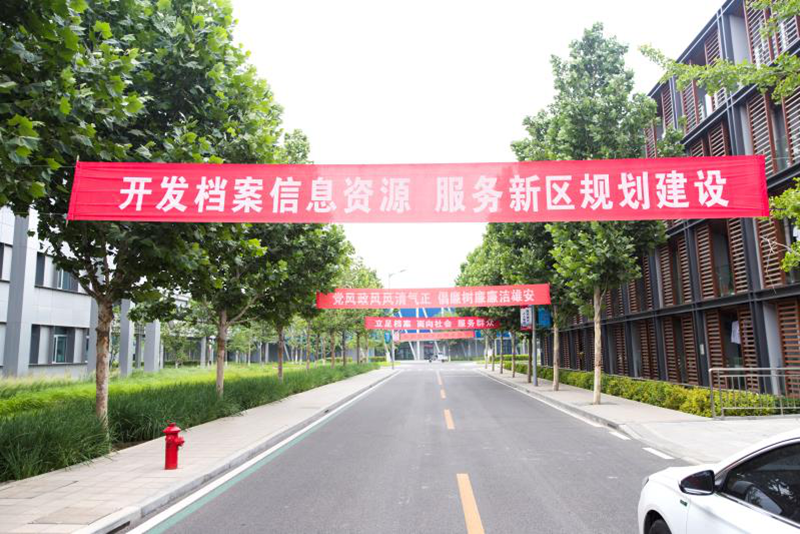 雄安市民服务中心悬挂了国际档案日宣传横幅。中国雄安官网记者牛思佳 摄