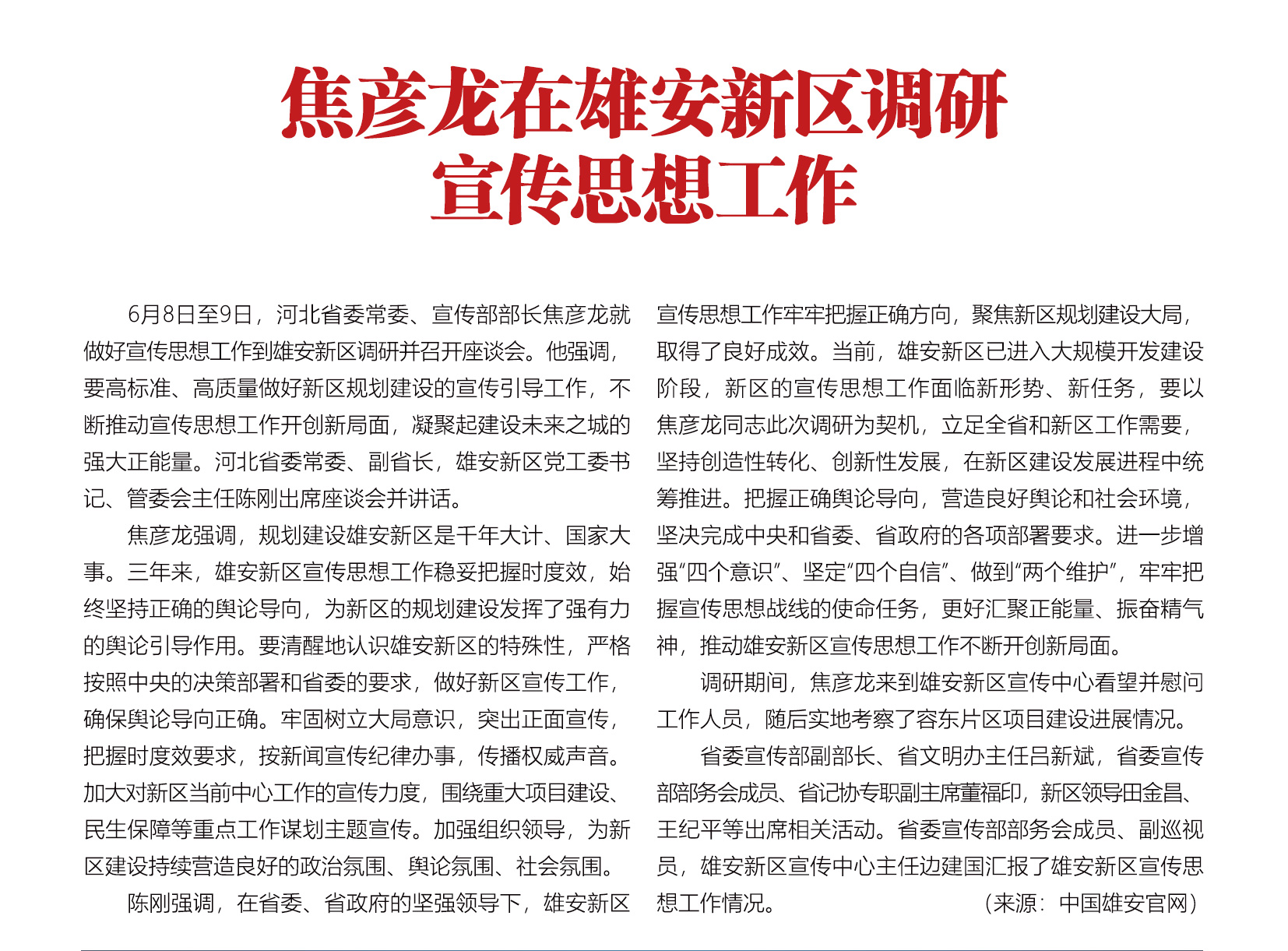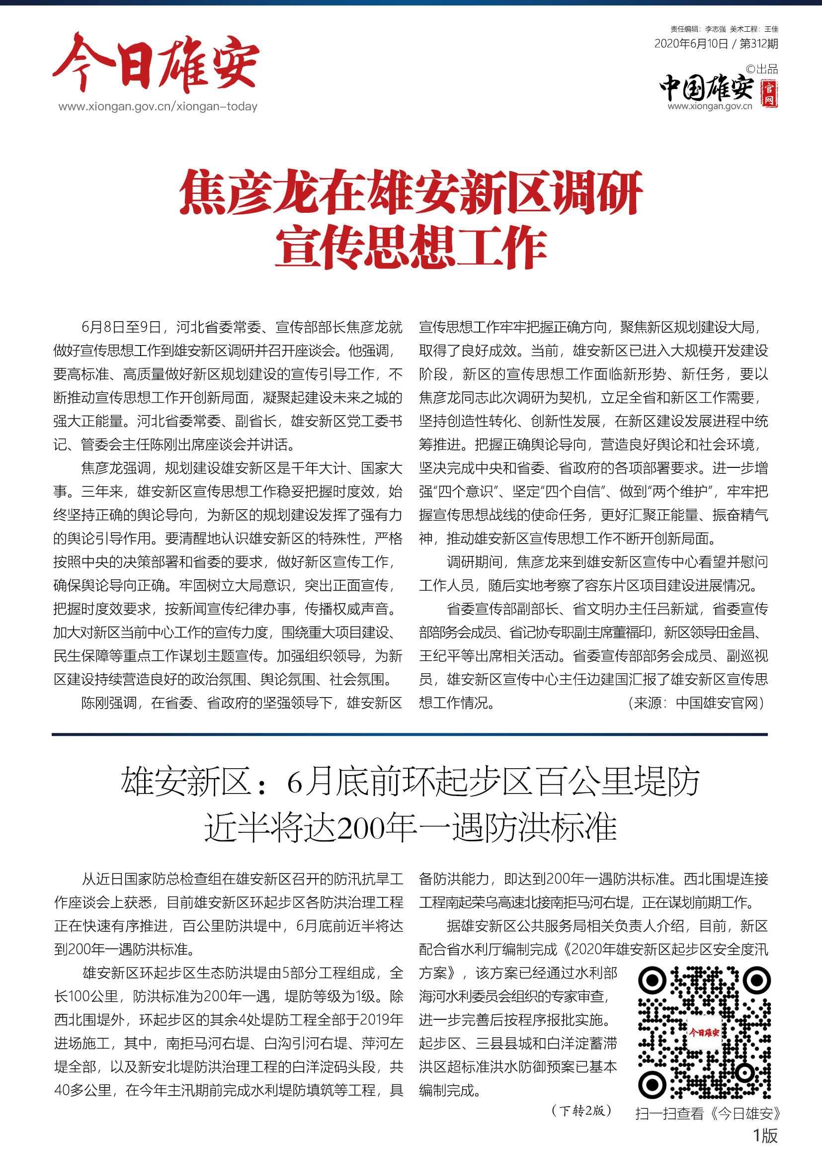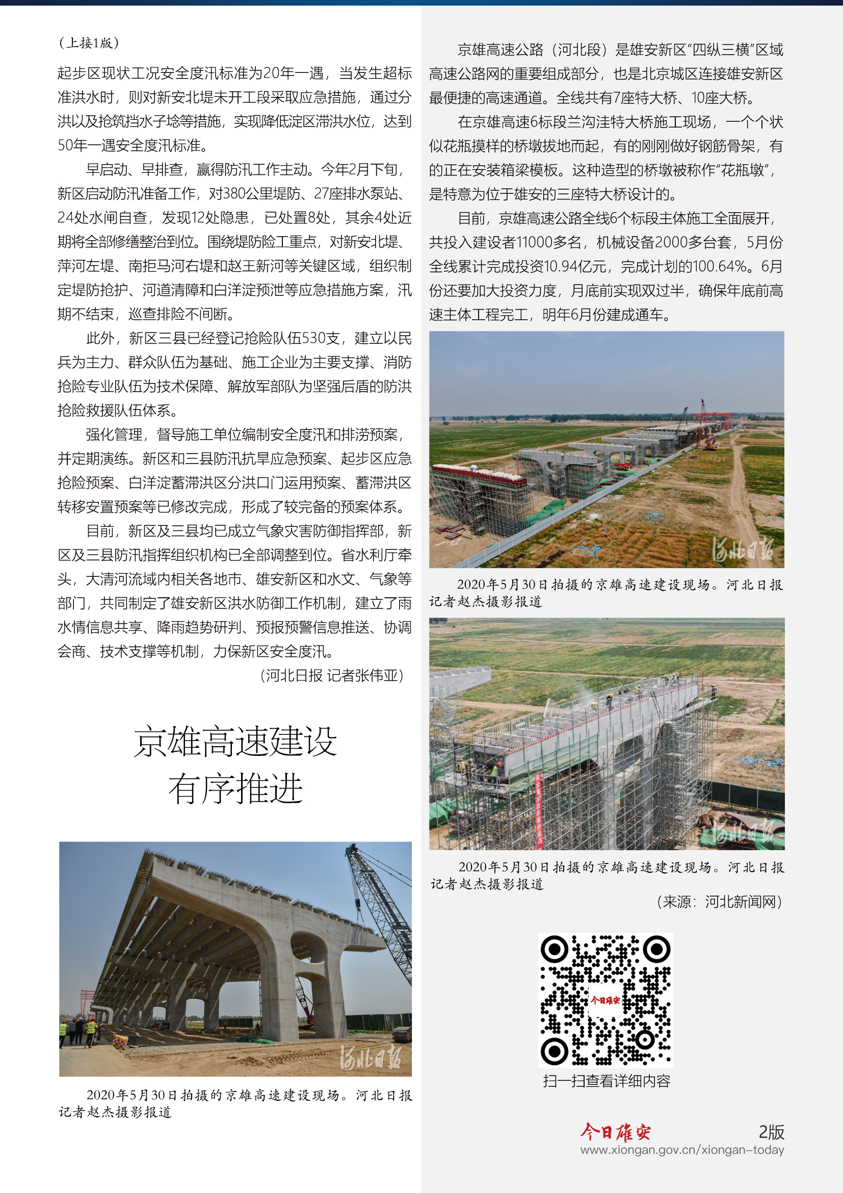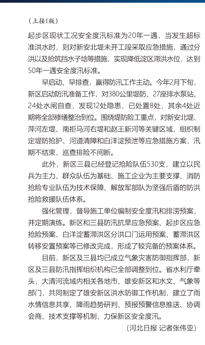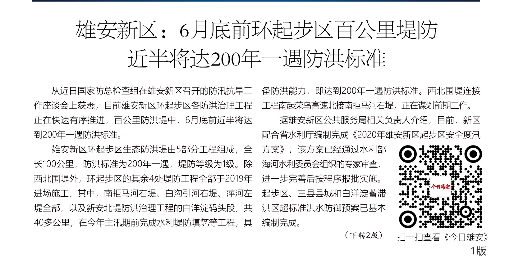 雄安新区:6月底前环起步区百公里堤防近半将达200年一遇防洪标准