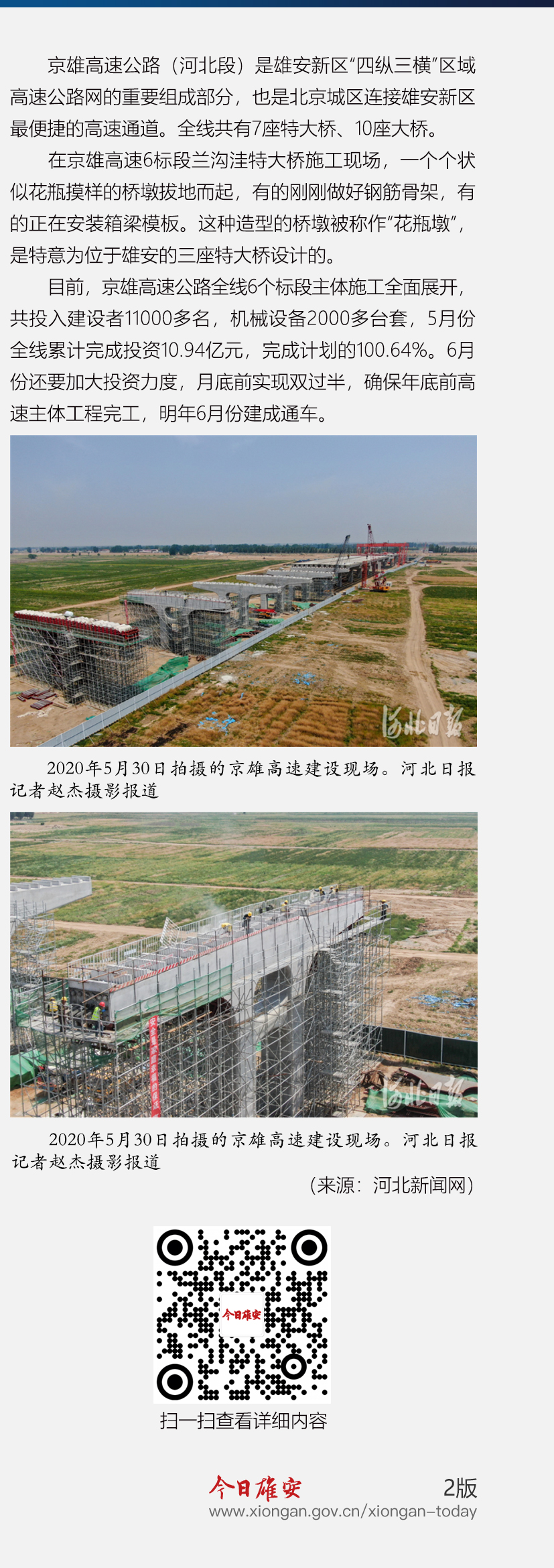 目前,京雄高速公路全线6个标段主体施工全面展开。