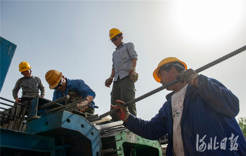 2020年6月14日,荣乌高速新线霸州段建设工地,建设者们在进行钢筋绑扎。荣乌高速新线工程是雄安新区“四纵三横”高速公路网规划的组成部分,对疏解雄安新区过境交通压力具有重要意义。河北日报记者田明 摄影报道