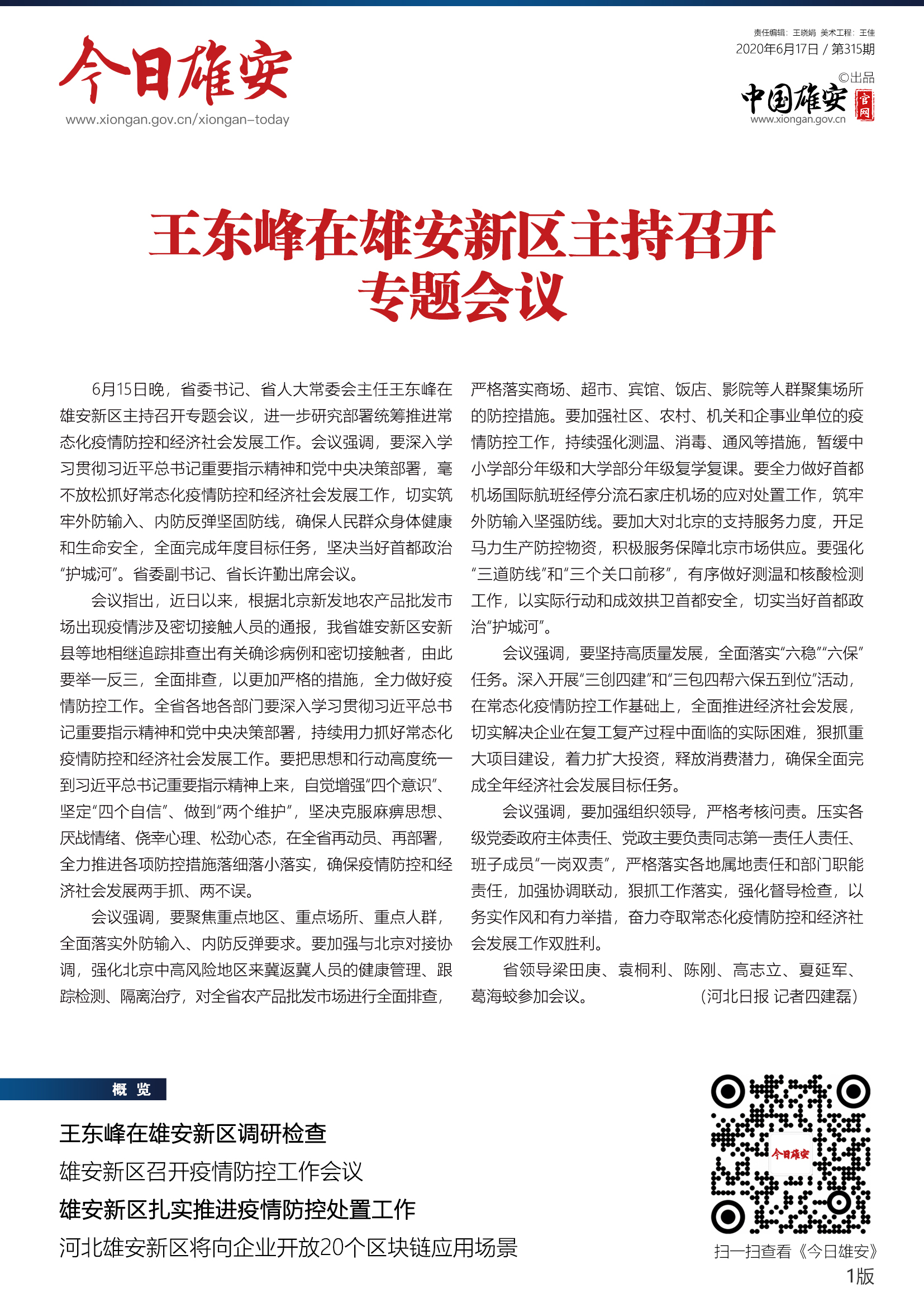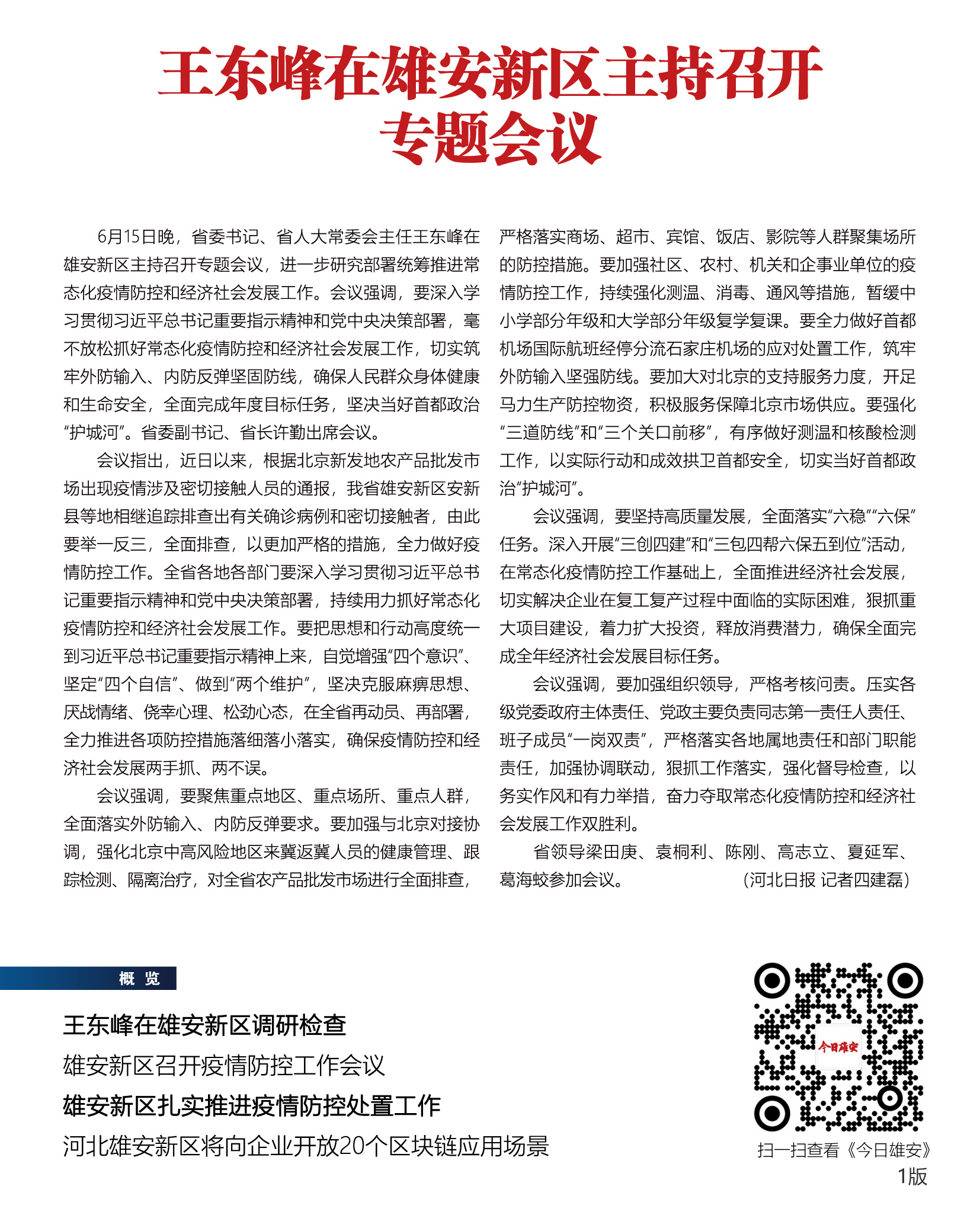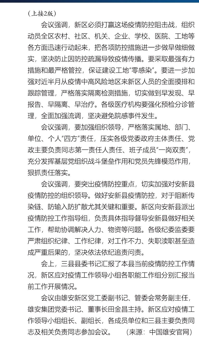 会议强调,要保护广大人民群众身体健康和生命安全,努力实现新区疫情防控和建设发展双胜利。
