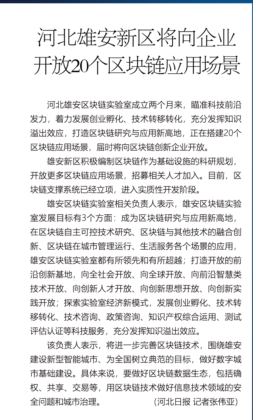 雄安区块链实验室揭牌成立,意味着雄安区块链技术的创新实践正式进入组织化、规模化落地阶段。