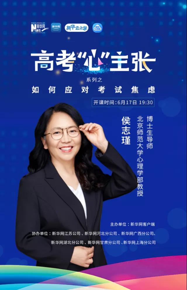 6月17日晚19:30,北京师范大学心理学部教授、博士生导师侯志瑾将为考生们带来考前心理减压直播课,帮助考生乐对高考,无惧挑战。