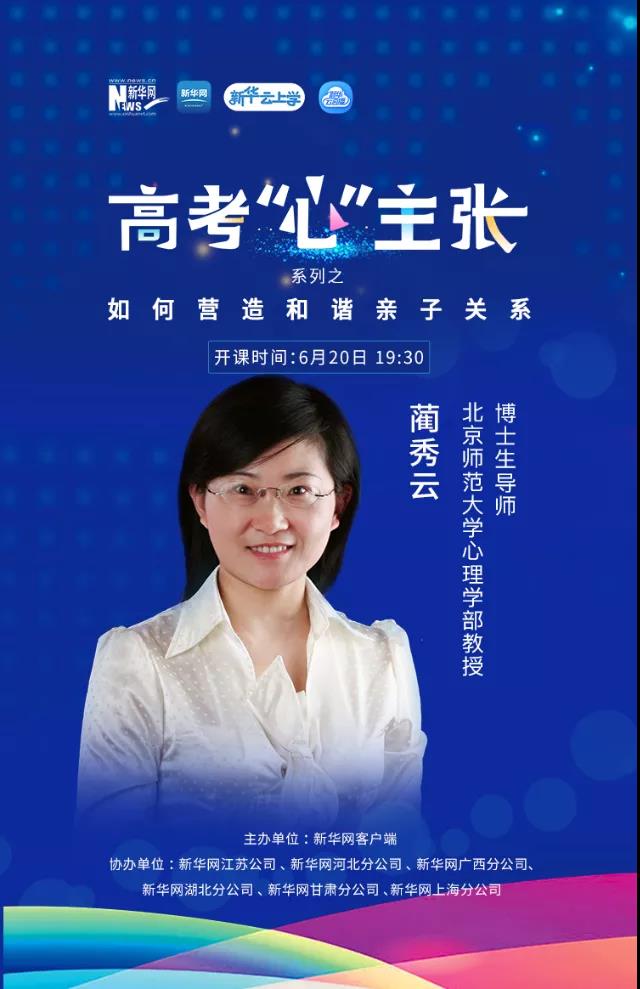 6月20日晚19:30,北京师范大学心理部教授、博士生导师蔺秀云为考生及家长提供高考期间亲子关系指导直播课,协助家长给孩子备考赋能。