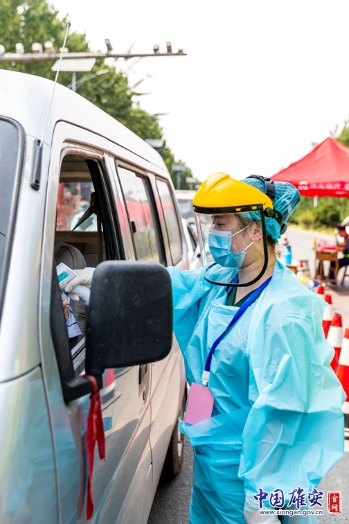 医务人员对过往车辆司机进行体温检测。中国雄安官网记者毛鹤然 摄