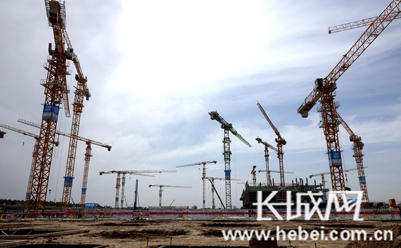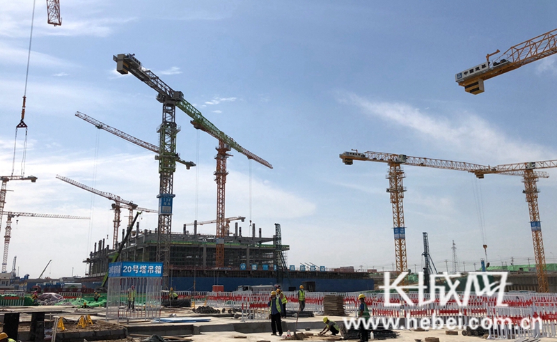 雄安商务服务中心建设现场,塔吊林立、热火朝天,广大建设者争分夺秒、日夜奋战。霍少轩 摄