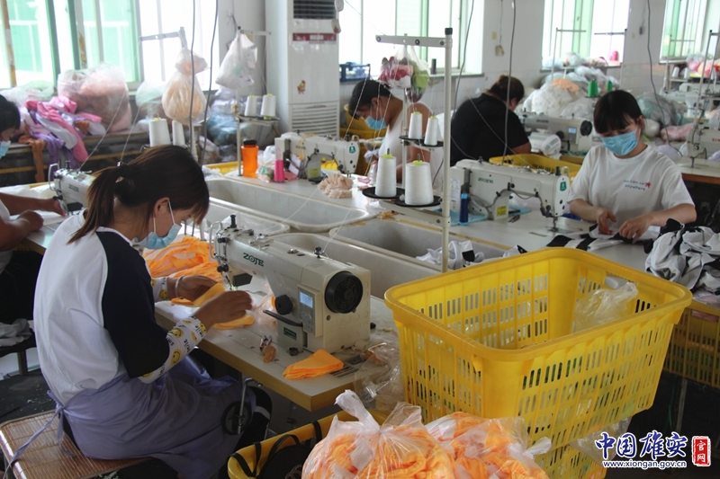 疫情期间,河北海发玩具有限公司坚持疫情防控不松劲,企业生产不断线。图为企业员工生产过程中全程佩戴口罩。中国雄安官网发