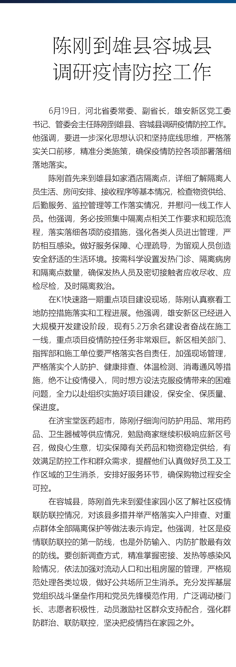 2020年6月20日0-24时,河北省新增报告新型冠状病毒肺炎确诊病例3例,其中雄安新区安新县1例(系北京新发地市场返乡人员)、张家口沽源县2例(均与北京返乡人员有密切接触史)。
