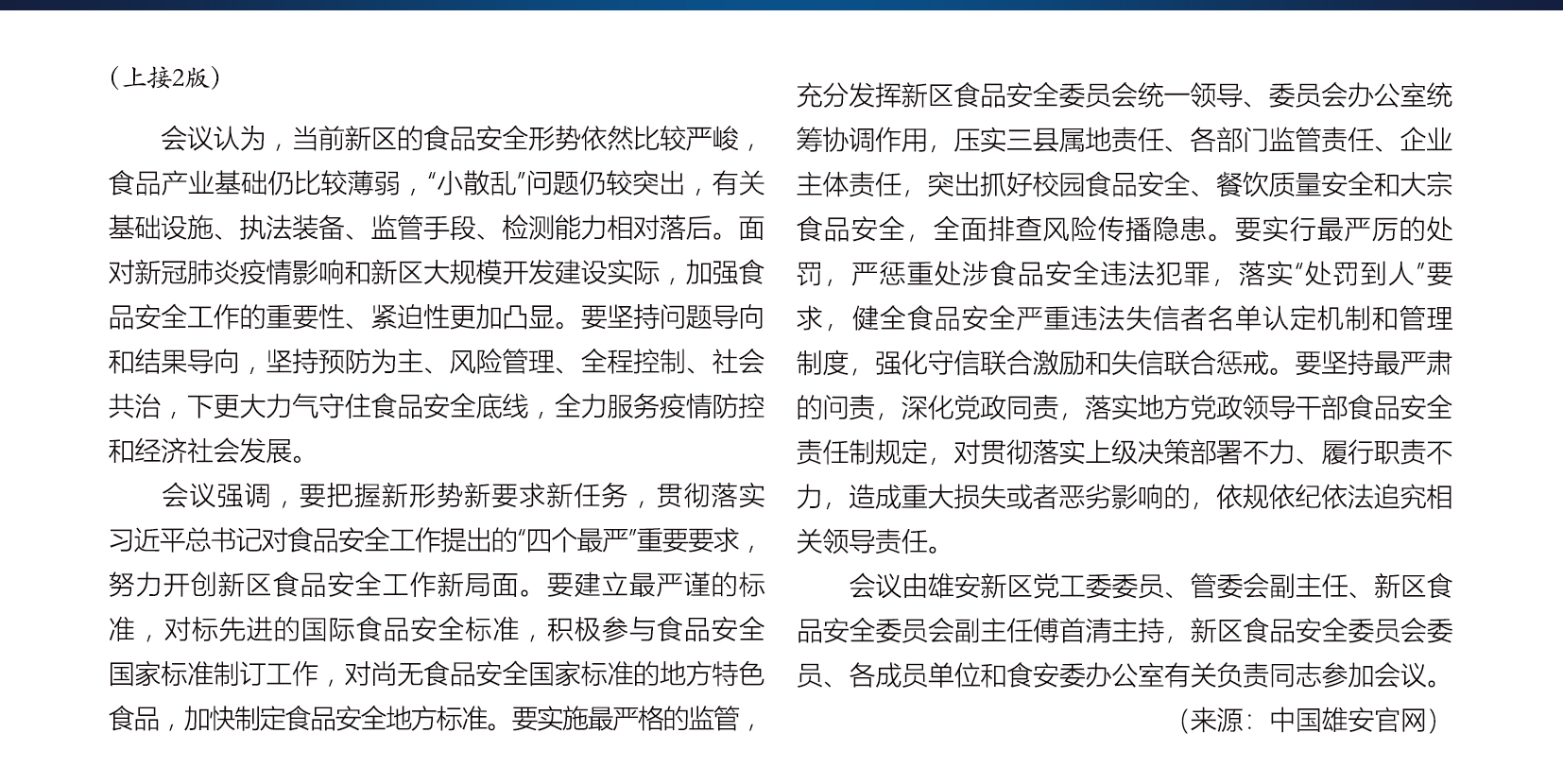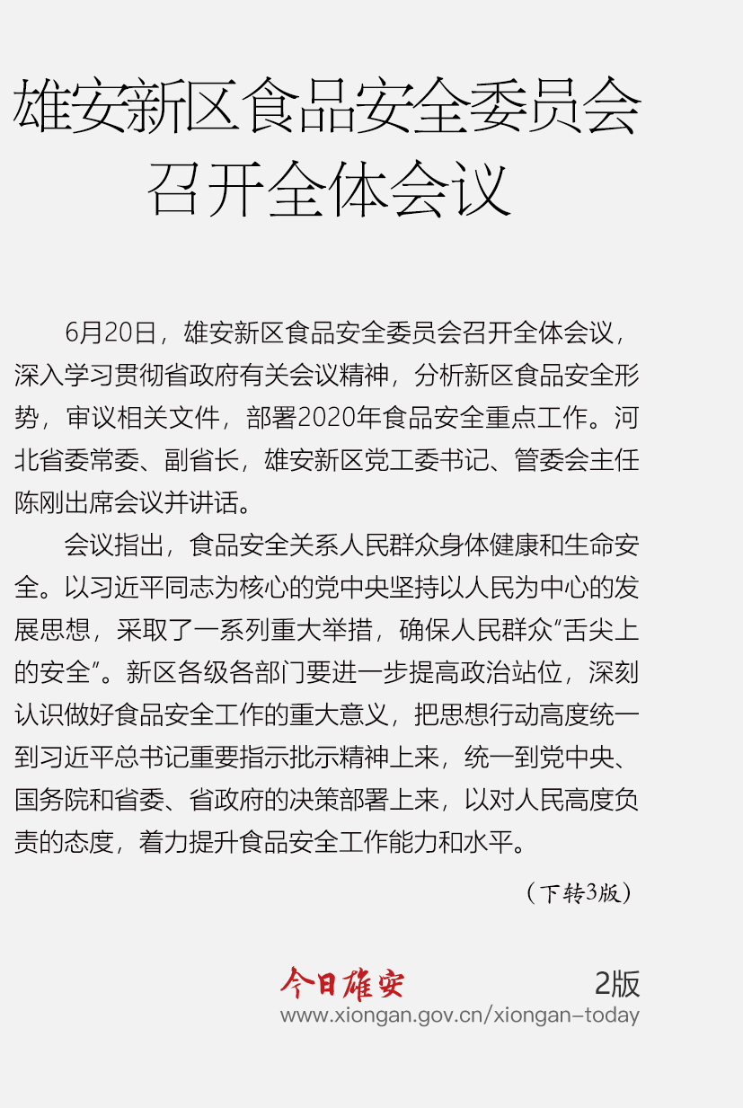 深入学习贯彻省政府有关会议精神,分析新区食品安全形势,审议相关文件,部署2020年食品安全重点工作。