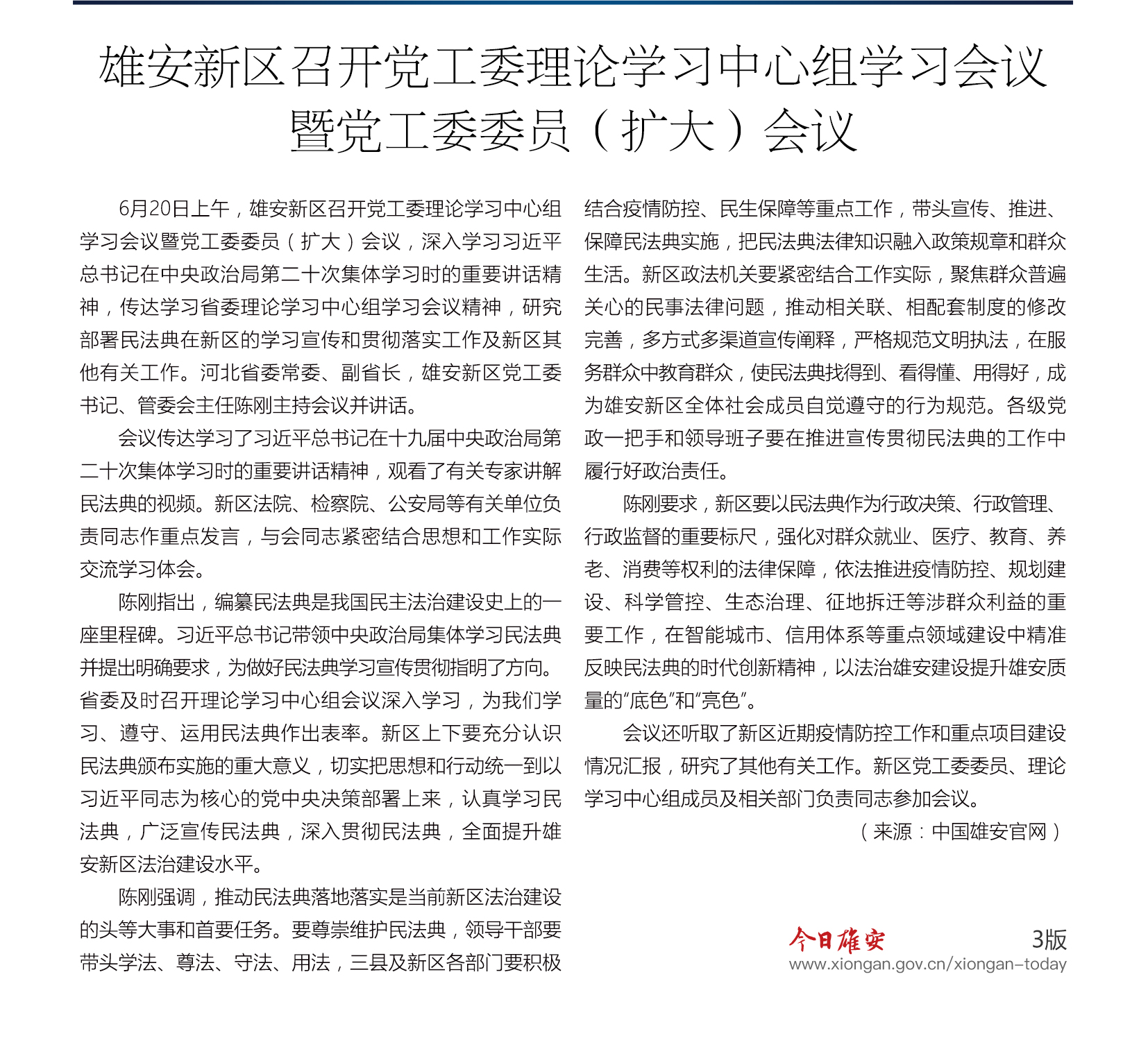 雄安新区召开党工委理论学习中心组学习会议暨党工委委员(扩大)会议