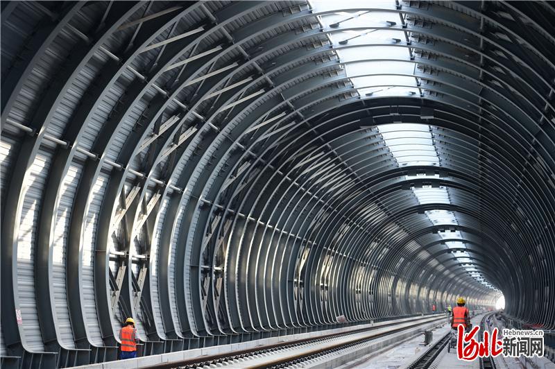 2020年6月21日,由中铁上海工程局承建施工的京雄城际铁路固霸特大桥全封闭式声屏障工程建成。声屏障工程全长847.25米,主体结构采用圆形钢架,跨长12.08米,高达9.4米,外围采用总面积约2.2万㎡的金属隔音板单元,最大程度降低高铁通过时产生的噪声。通讯员傅新春摄影报道