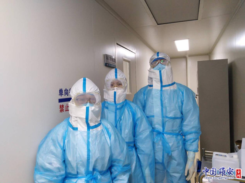 容城县人民医院核酸检测实验室检验人员在封闭的实验室里工作。中国雄安官网发