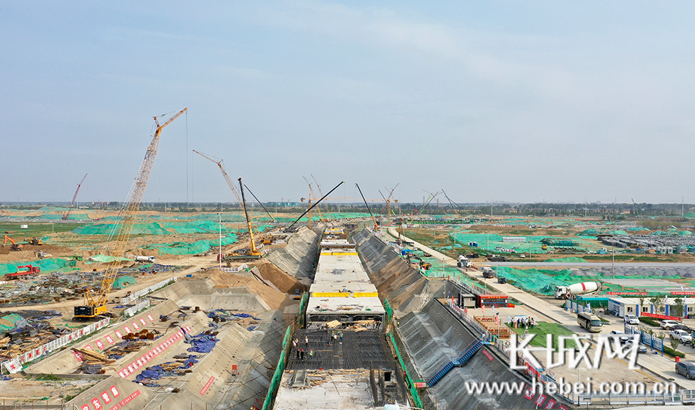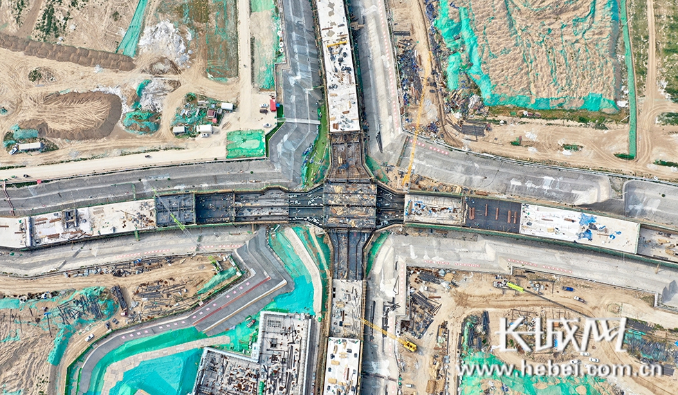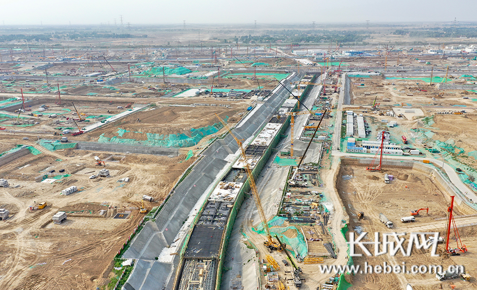 航拍容东片区综合管网工程施工现场。霍少轩 摄