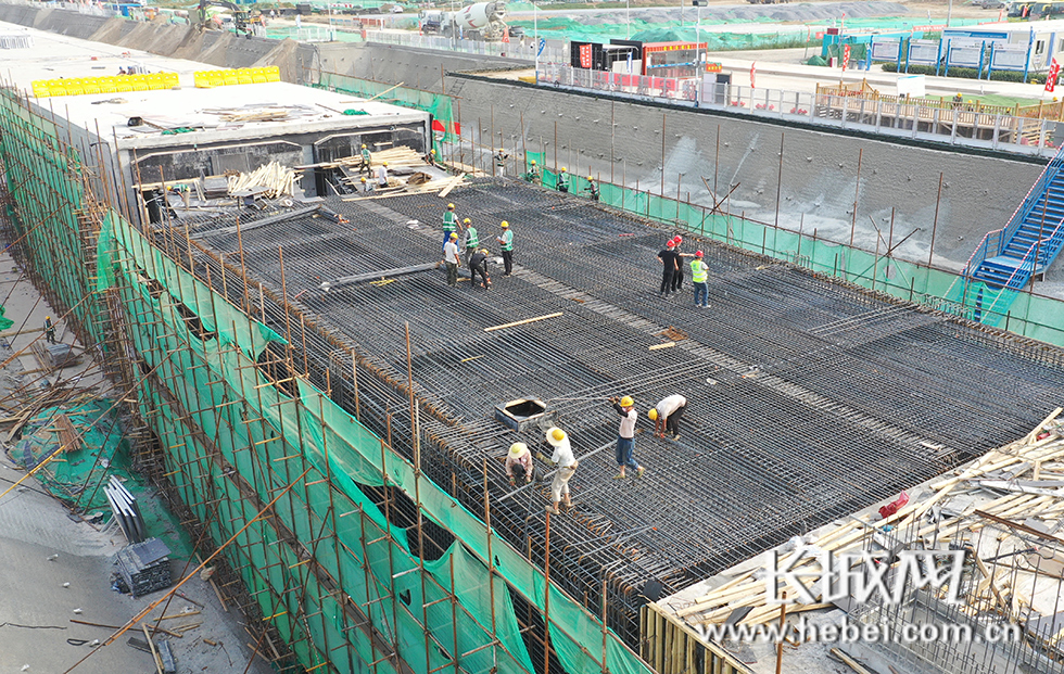 容东AF社区RDSG-1标段施工现场,工人们正在加紧施工。霍少轩 摄