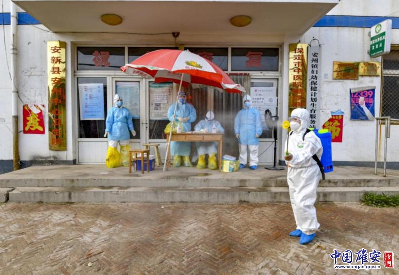 工作人员对采集现场进行消毒。中国雄安官网记者靳新平 摄