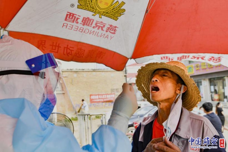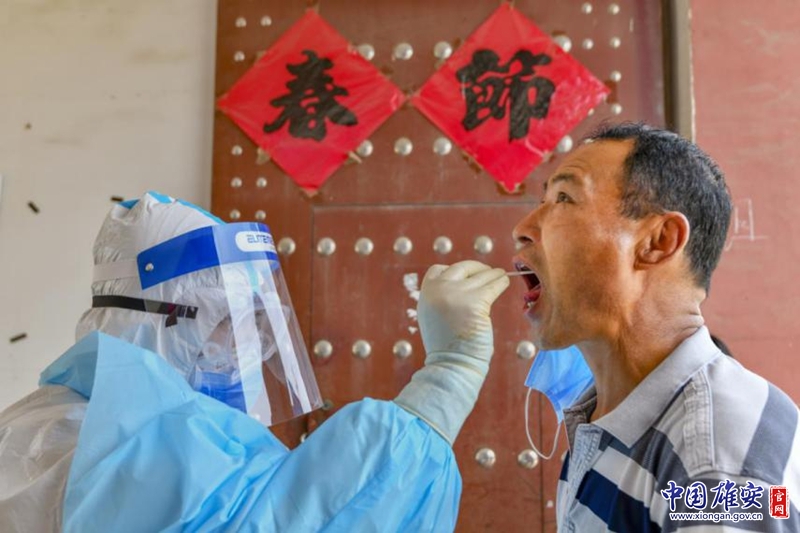医务人员为村民采集咽拭子。中国雄安官网记者靳新平 摄