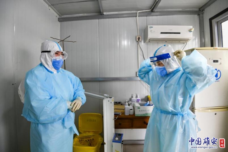 医务人员正在脱防护服。中国雄安官网记者靳新平 摄