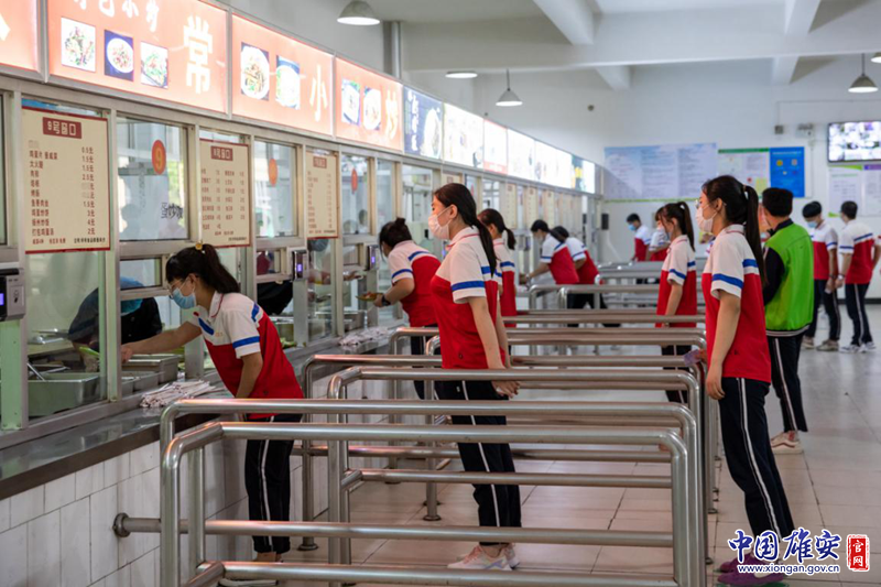 雄县中学高三学子正在排队打饭。雄县中学供图
