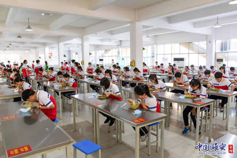 雄县中学高三学子中午在食堂吃饭。雄县中学供图