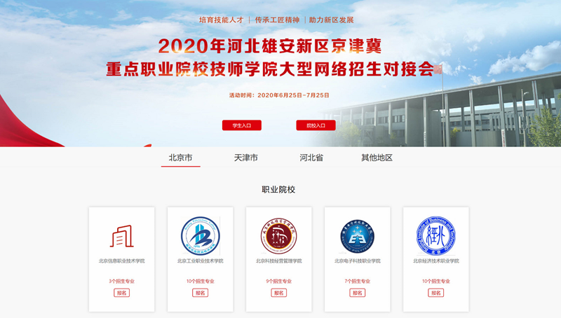2020年河北雄安新区京津冀重点职业院校技师学院大型网络招生对接会专区。