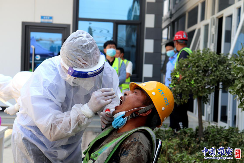 医护人员为新区建设者采集咽拭子。中国雄安官网发