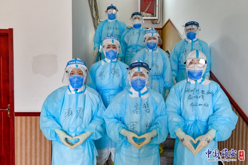 安新县豪景四季集中隔离医学观察点医护人员合影。中国雄安官网靳新平 摄