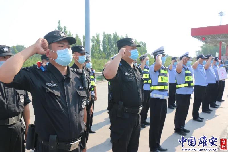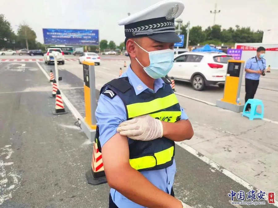 烈日炎炎,容城县公安局执勤民警汗如雨下,皮肤被晒得通红。中国雄安官网发