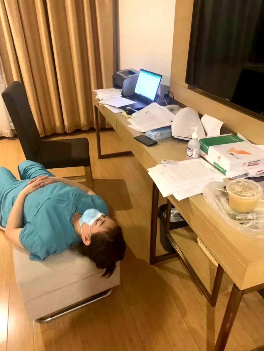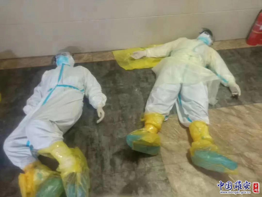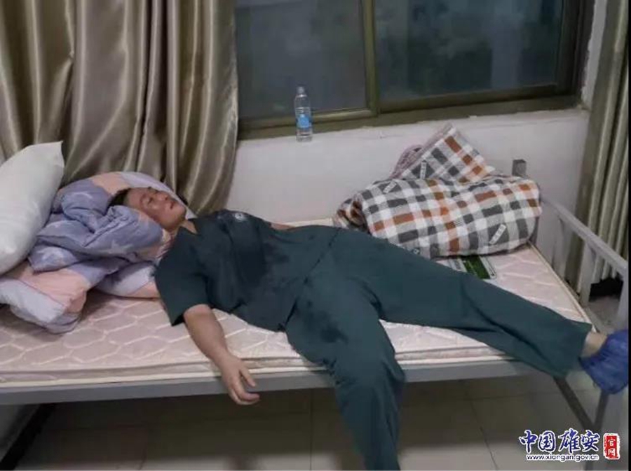 安新县医护人员临时休息,她们是最可爱的人。