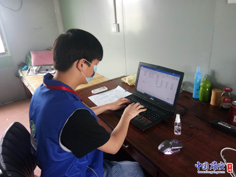 安新县90后大学生党员郝居正录入人员信息。中国雄安官网发
