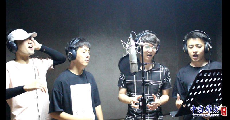 安新县95后共产党员张雷(左一)携团队创作抗疫歌曲《雁翎铁军守雄安》。中国雄安官网发