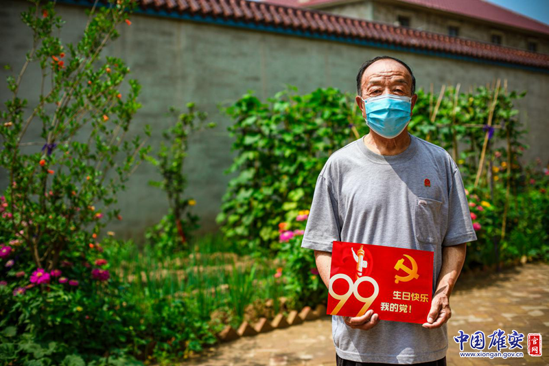 双堂村优秀退役军人王景茹为党的生日送上祝福。中国雄安官网发