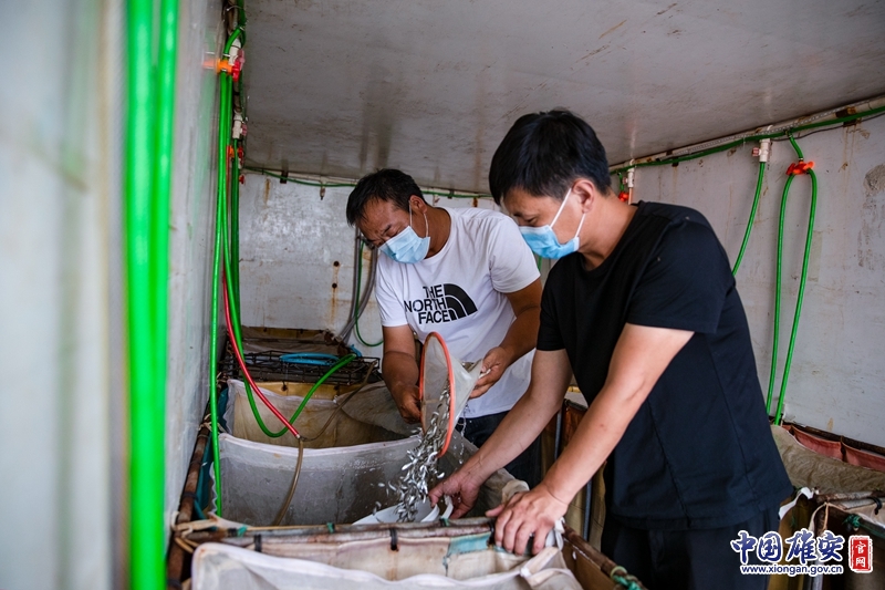 工作人员正在做鱼苗投放准备工作。中国雄安官网记者牛思佳 摄