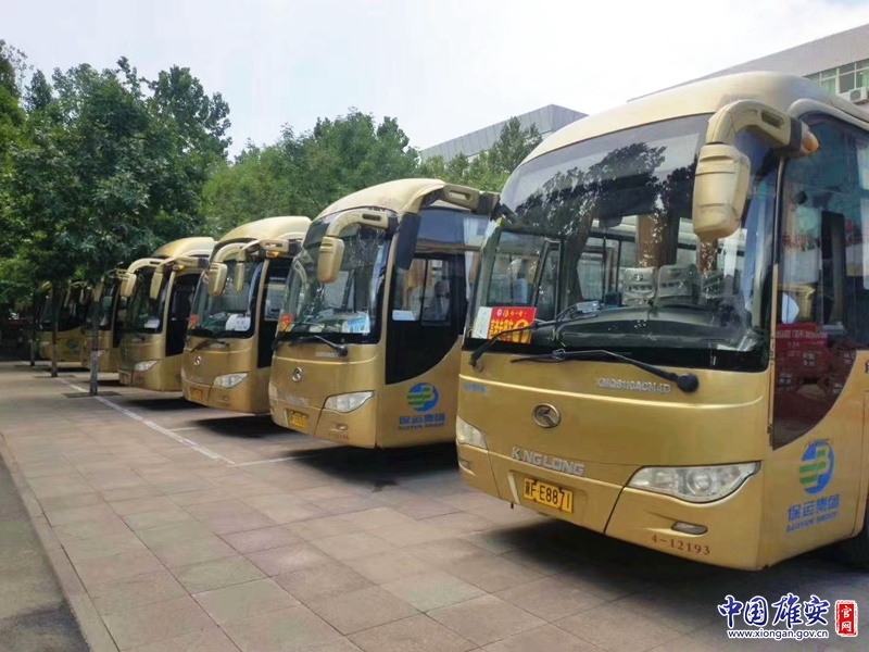 雄县中学高考送考大巴排队等候考生。中国雄安官网发