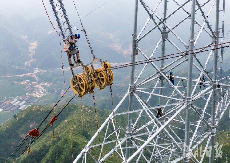7月8日,张北-雄安1000千伏特高压输变电工程完成乌龙沟跨越施工。该跨越涉及的两基铁塔分别以全高211.61米、总重740吨成为山区特高压最高、最重输电铁塔,成为张雄特高压“最高一跨”,也是最艰难的一跨,它的顺利完工标志着这条将张北清洁能源直送雄安新区的新基建工程竣工投运进入倒计时。