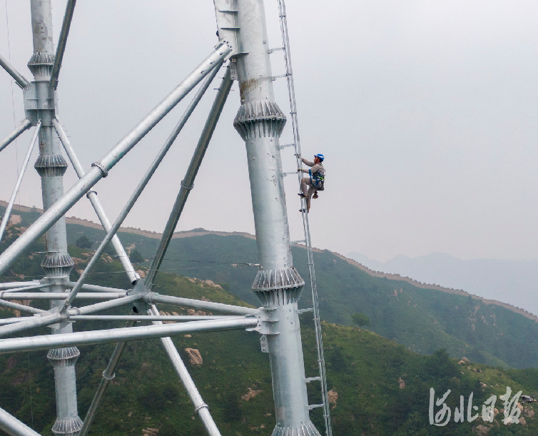 “两基塔所在的位置都是人员无法站立的60度斜坡,为了施工,我们花了一个月时间,硬是用4000根9米长钢管在峭壁上搭设出300平米作业平台。”项目经理王敬德介绍,该工程严格对标“雄安质量”,铁塔封顶后,国网河北电力又将两基铁塔上25000颗螺丝钉逐一人工紧固,确保铁塔稳固可靠。