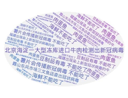 此类谣言抓住了本次北京新发地疫情的特点——在农产品批发市场的三文鱼案板上检测出新冠病毒。据此从食物下手,造谣某种食物上检测出新冠病毒,呼吁大家不要食用。