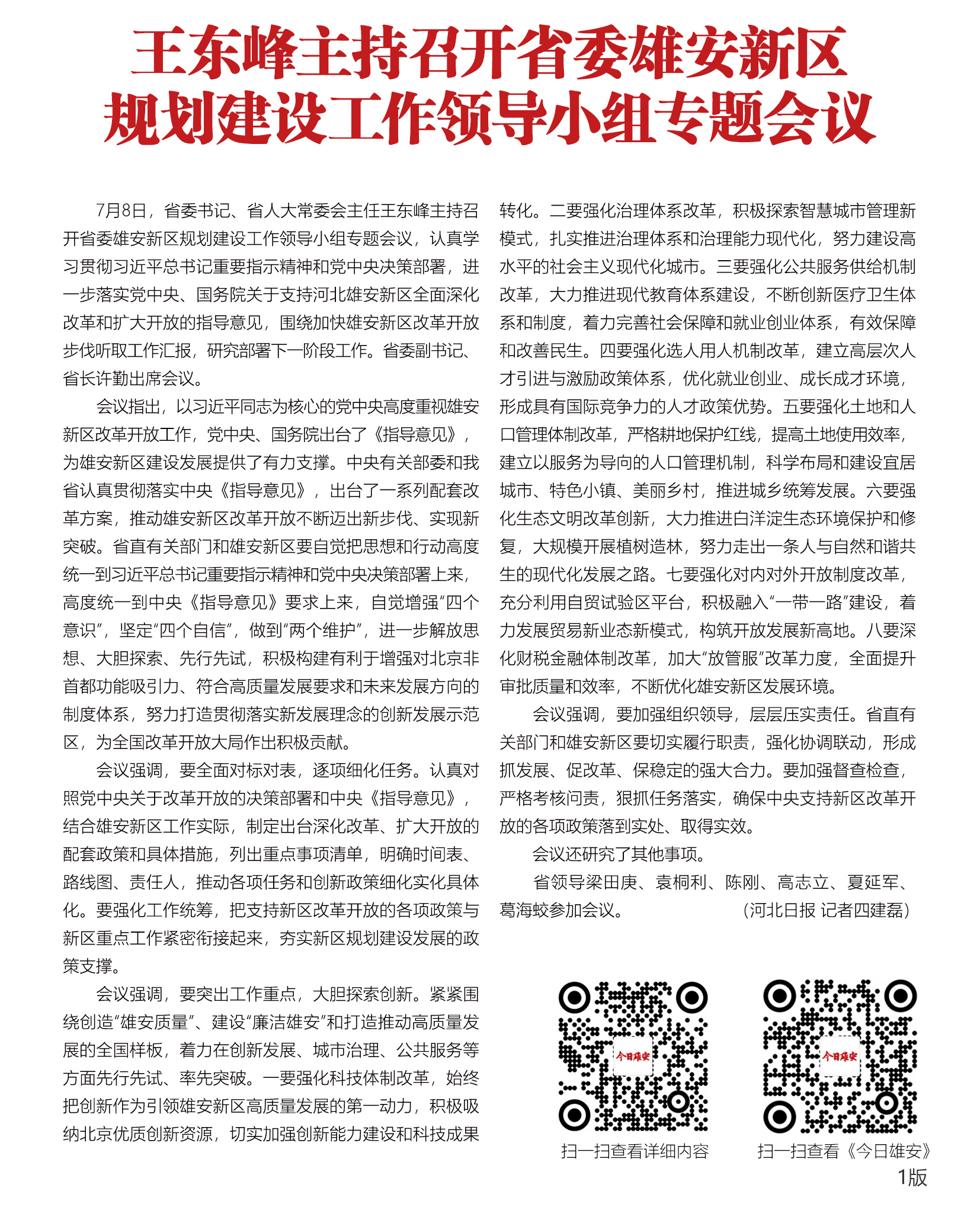 王东峰强调,要积极构建全面深化改革扩大开放制度体系,为全国改革开放大局作出雄安新区新贡献。