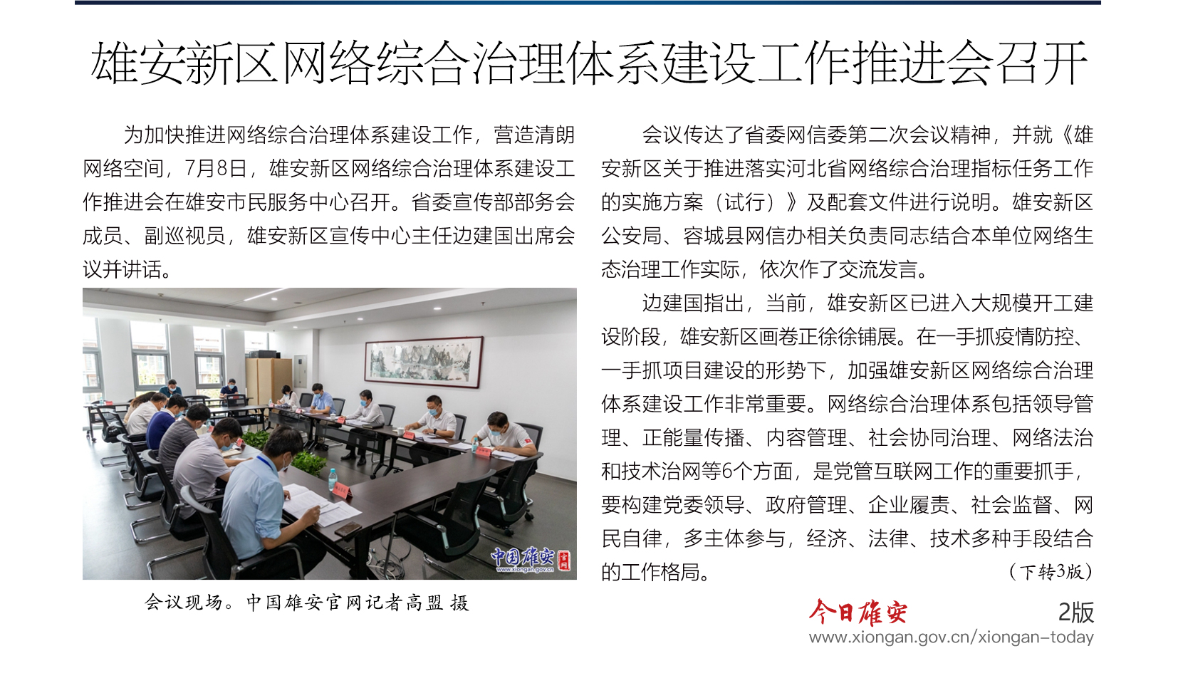 7月8日,雄安新区网络综合治理体系建设工作推进会在雄安市民服务中心召开。