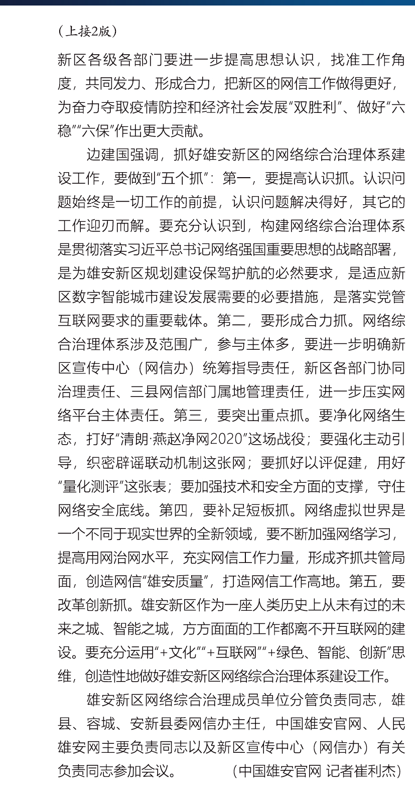 雄安新区网络综合治理体系建设工作推进会召开