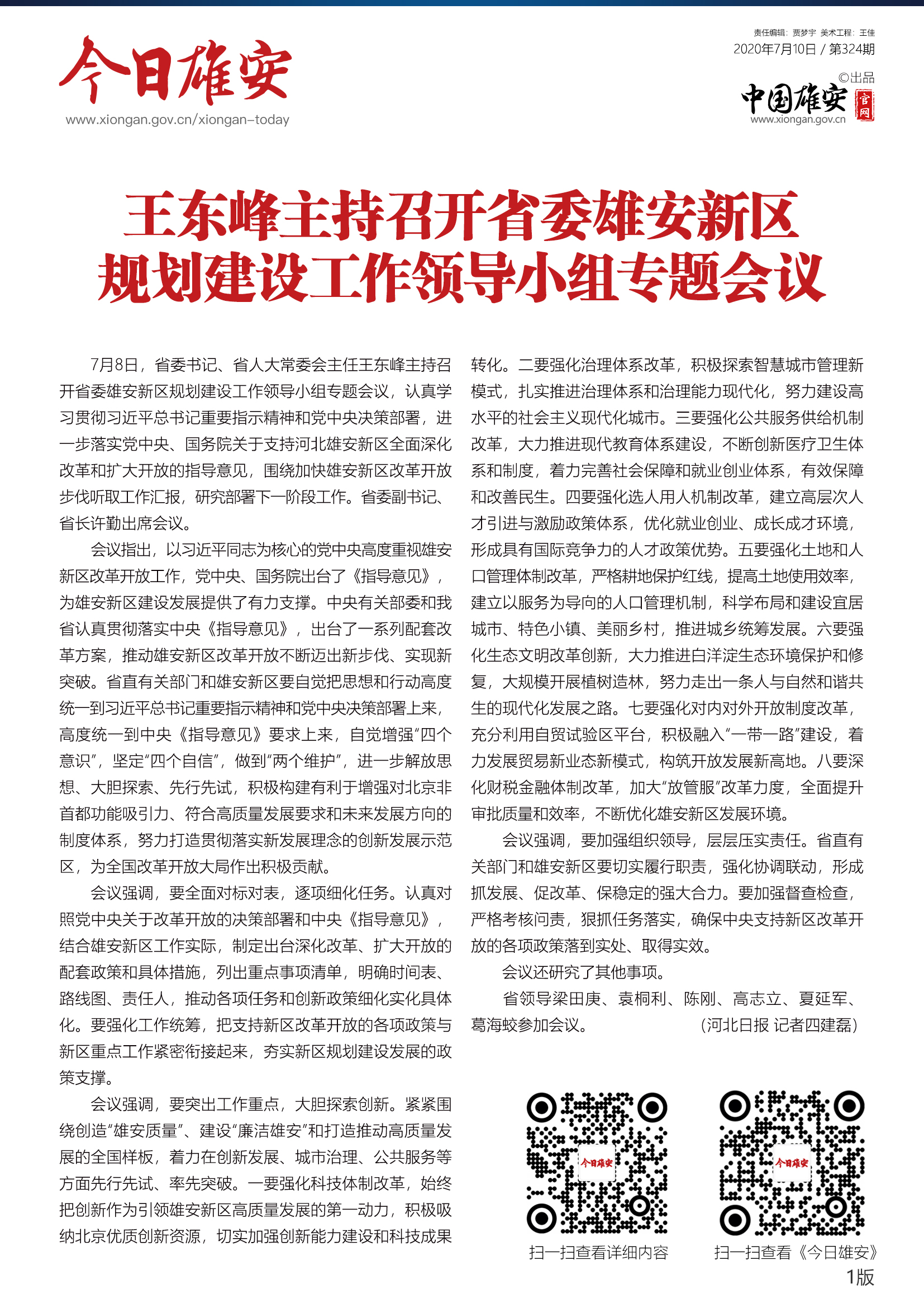 《今日雄安》 2020年7月10日 第324期