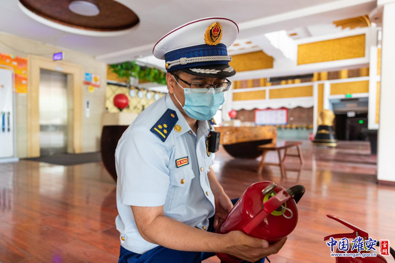 消防救援大队执法人员对灭火器等消防器材进行检查。中国雄安官网记者高盟 摄