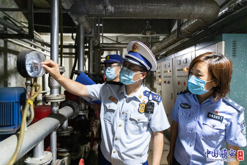 消防救援大队和治安大队执法人员进入校园消防泵房内检查。中国雄安官网记者高盟 摄