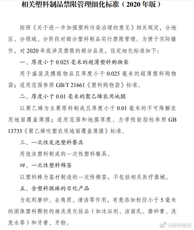 国家发展改革委等9部门17日公布文件,要求扎实推进塑料污染治理工作,8月底前,各地要启动商场超市、集贸市场、餐饮行业等重点领域禁限塑推进情况专项执法检查。年底前,生态环境部、国家发展改革委将会同各相关部门开展塑料污染治理督促检查联合专项行动,对各地实施方案制定、工作推进和监督执法情况进行部委联合督查。(记者安蓓)