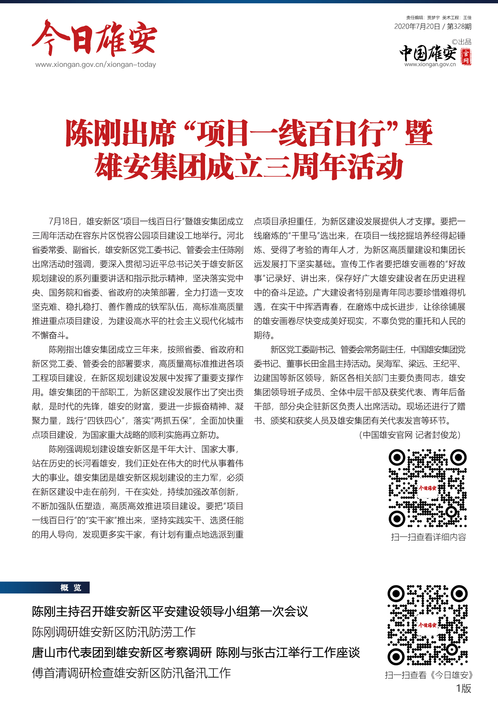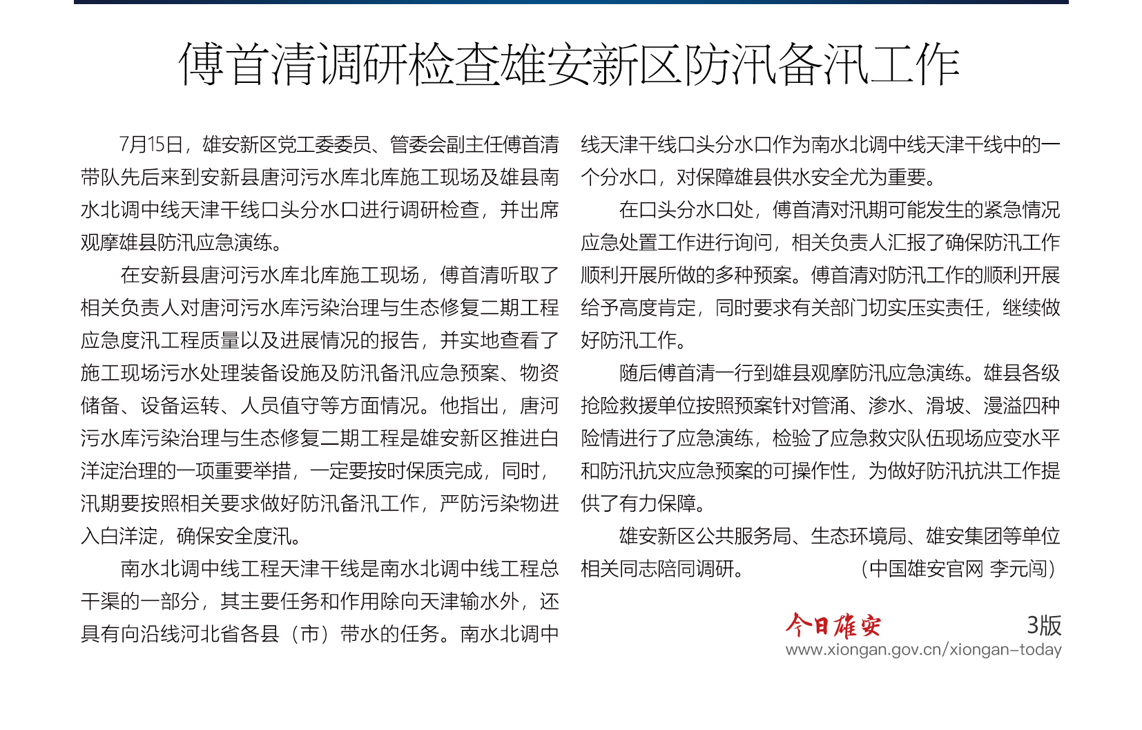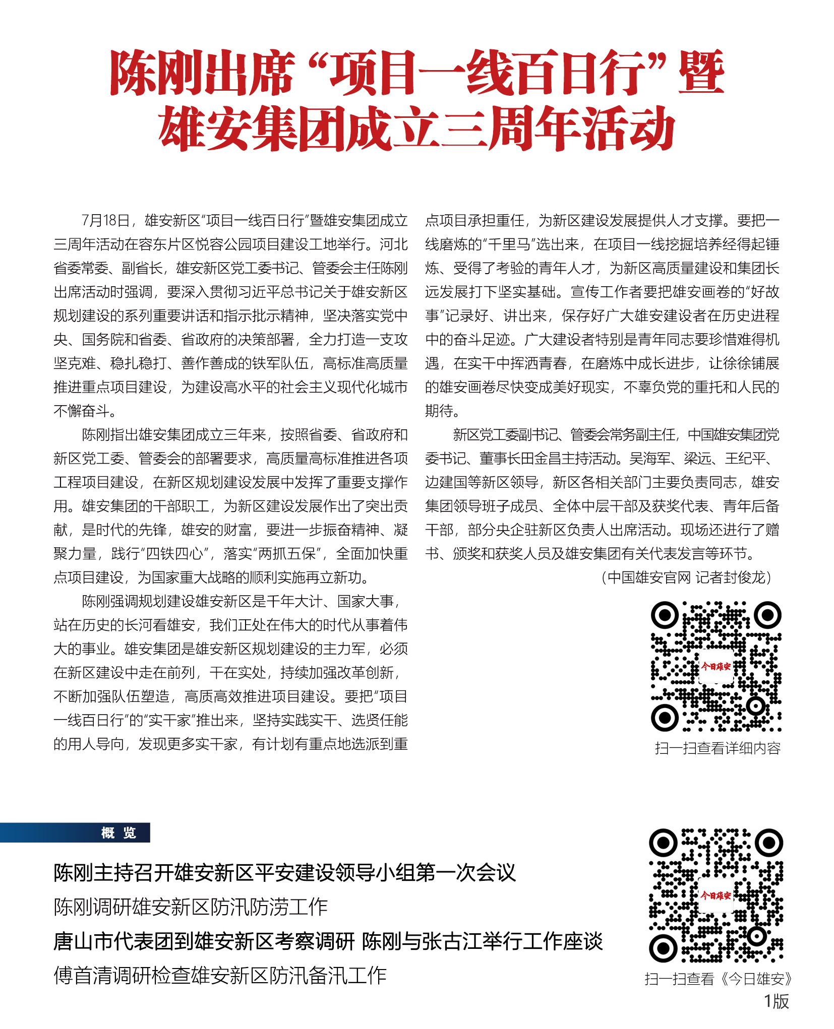 7月18日,河北省委常委、副省长,雄安新区党工委书记、管委会主任陈刚到容东片区和安新县调研防汛防涝工作。