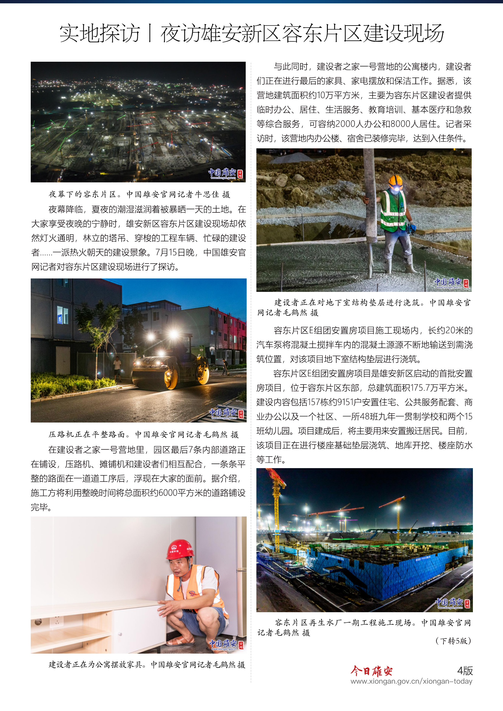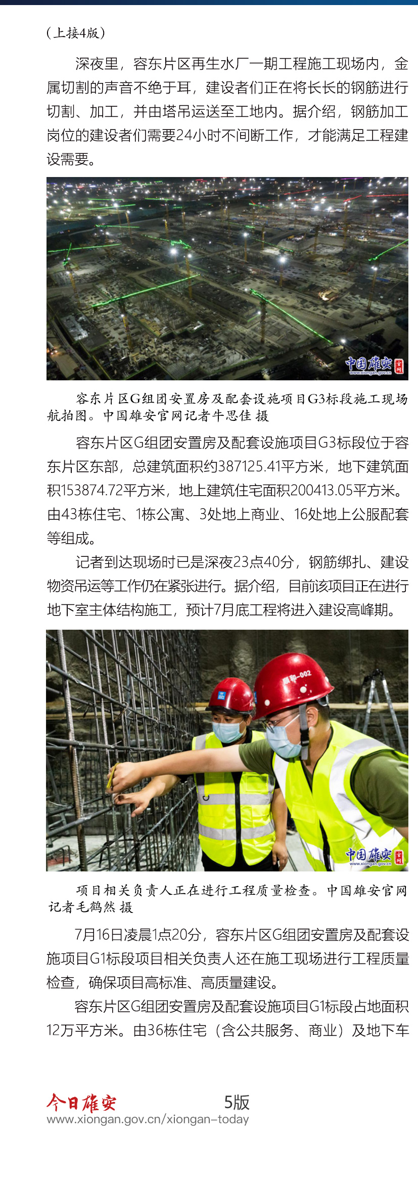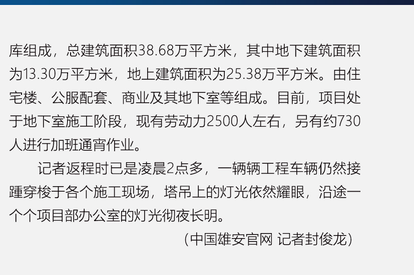雄安新区容东片区建设现场灯火通明,林立的塔吊、穿梭的工程车辆、忙碌的建设者......