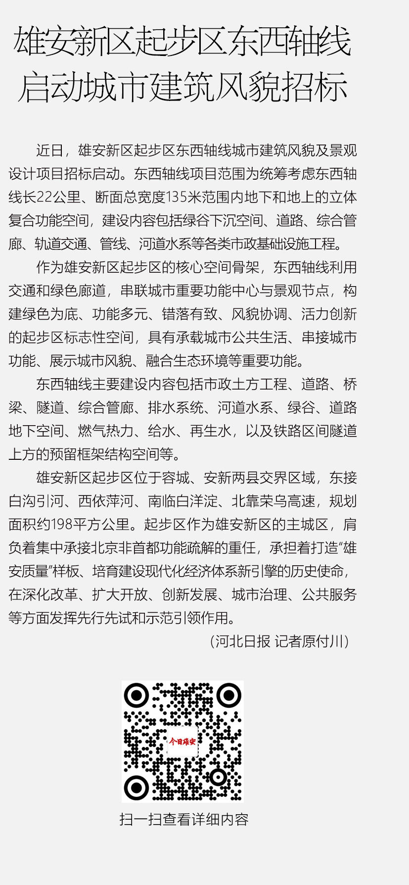 雄安新区起步区东西轴线启动城市建筑风貌招标