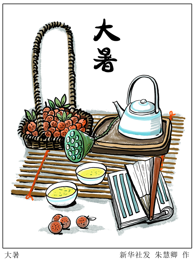 “赤日几时过,清风无处寻”。“大暑”是一年中最热的一个节气,古籍《月令七十二候集解》中解释说:“暑,热也。就热之中分为大小,月初为小,月中为大”。酷热多雨、高温潮湿是此时节的天气特点,“桑拿天”几乎成为常态。