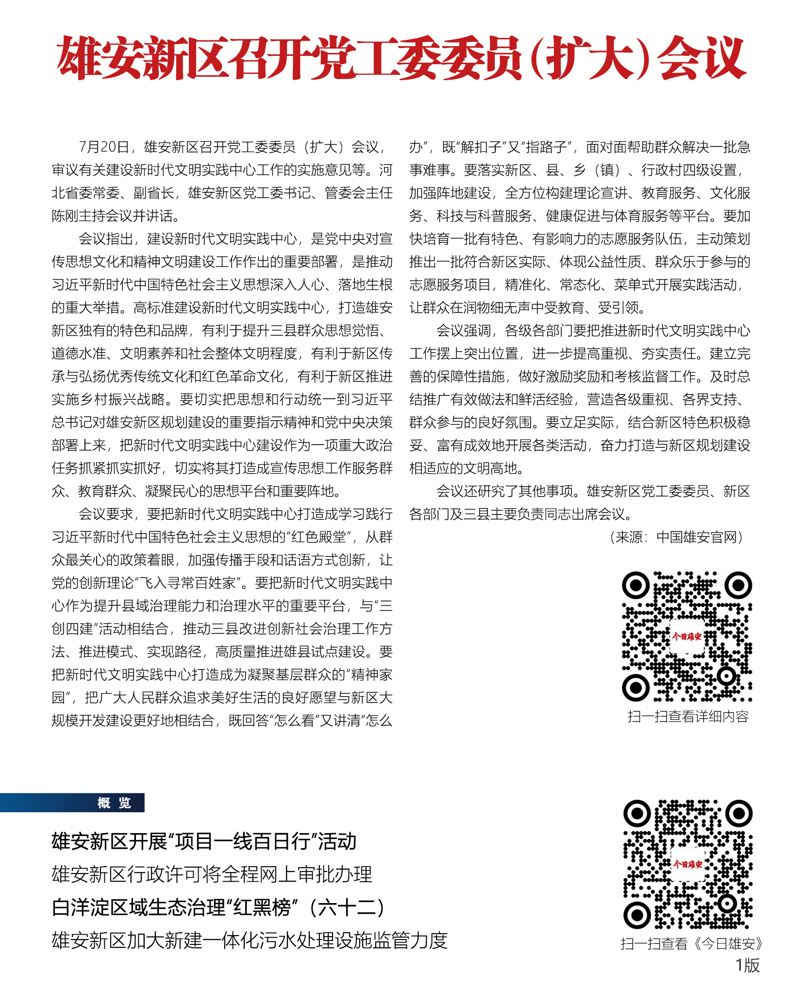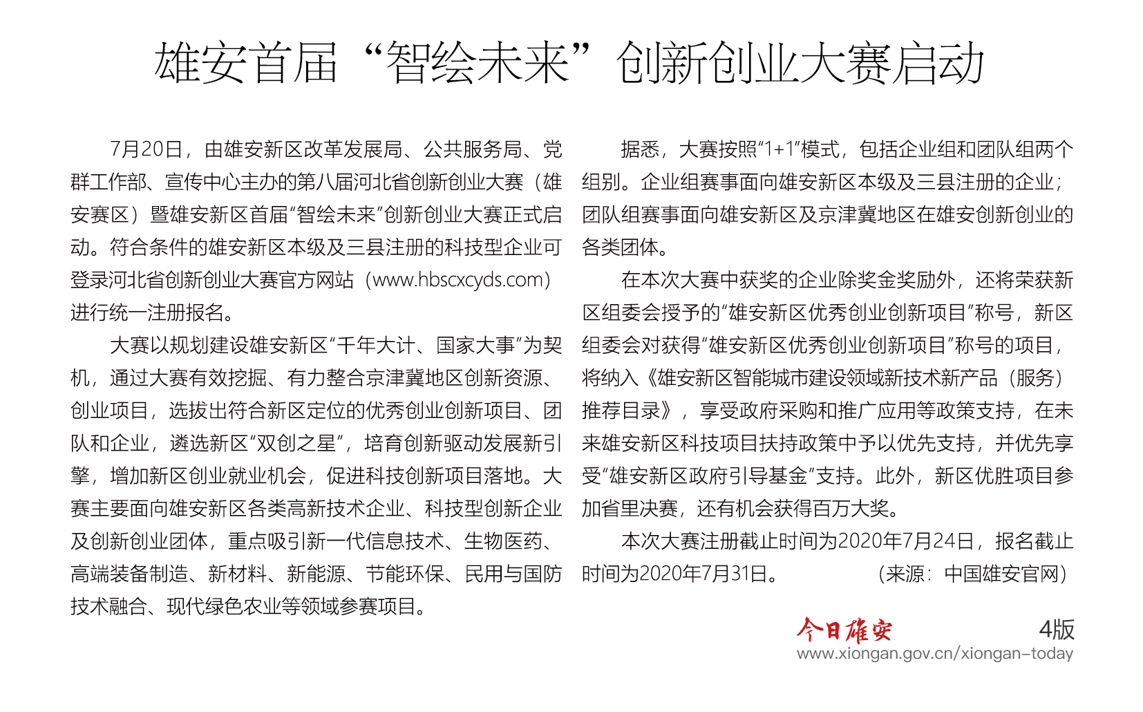 《今日雄安》 2020年7月20日 第328期